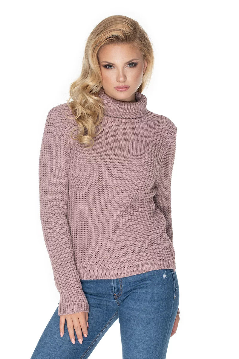 Dámsky viskózový sveter s rolákom a dlhými rukávmi hnedý UNI
