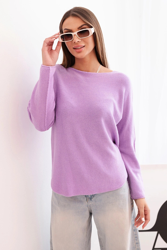 Dámsky viskózový sveter s dlhými rukávmi a okrúhlym výstrihom svetlo fialovej farby UNI