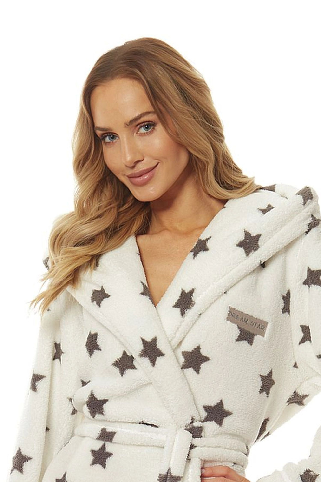 Dámsky župan 9135 white L&L - biela farba - z mäkkého materiálu - s tmavosivými hviezdami - s vreckami a viazaním v páse - s kapucňou Zloženie materiálu: 100% polyester Dámske veľkosti S/M L/XL Výška (cm) 164 170 Obvod prsníkov (cm) 96 96 Obvod bokov (cm) 104 108 Pánske veľkosti L XL Výška (cm) 176 182 Obvod prsníkov (cm) 114-116 118-120 Obvod bokov (cm) 112 116