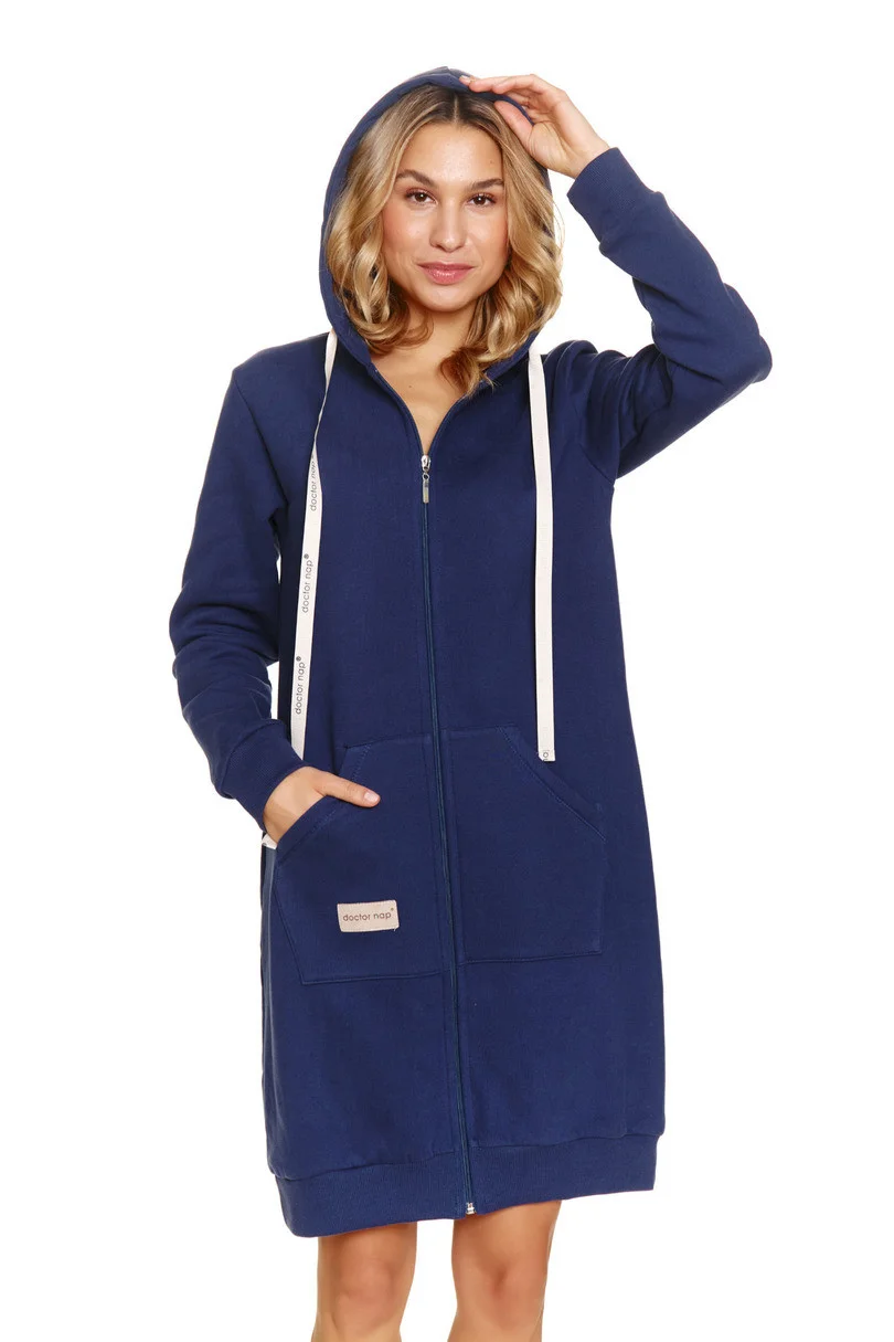 Dámsky župan v domácom štýle ušitý z jemnej a hrejivej bavlny. Mikinový strih, zapínanie na zips, dlhý rukáv. Dve vrecká na prednej strane. Balené v darčekovej kartónovej krabici.Zloženie: 100% bavlna