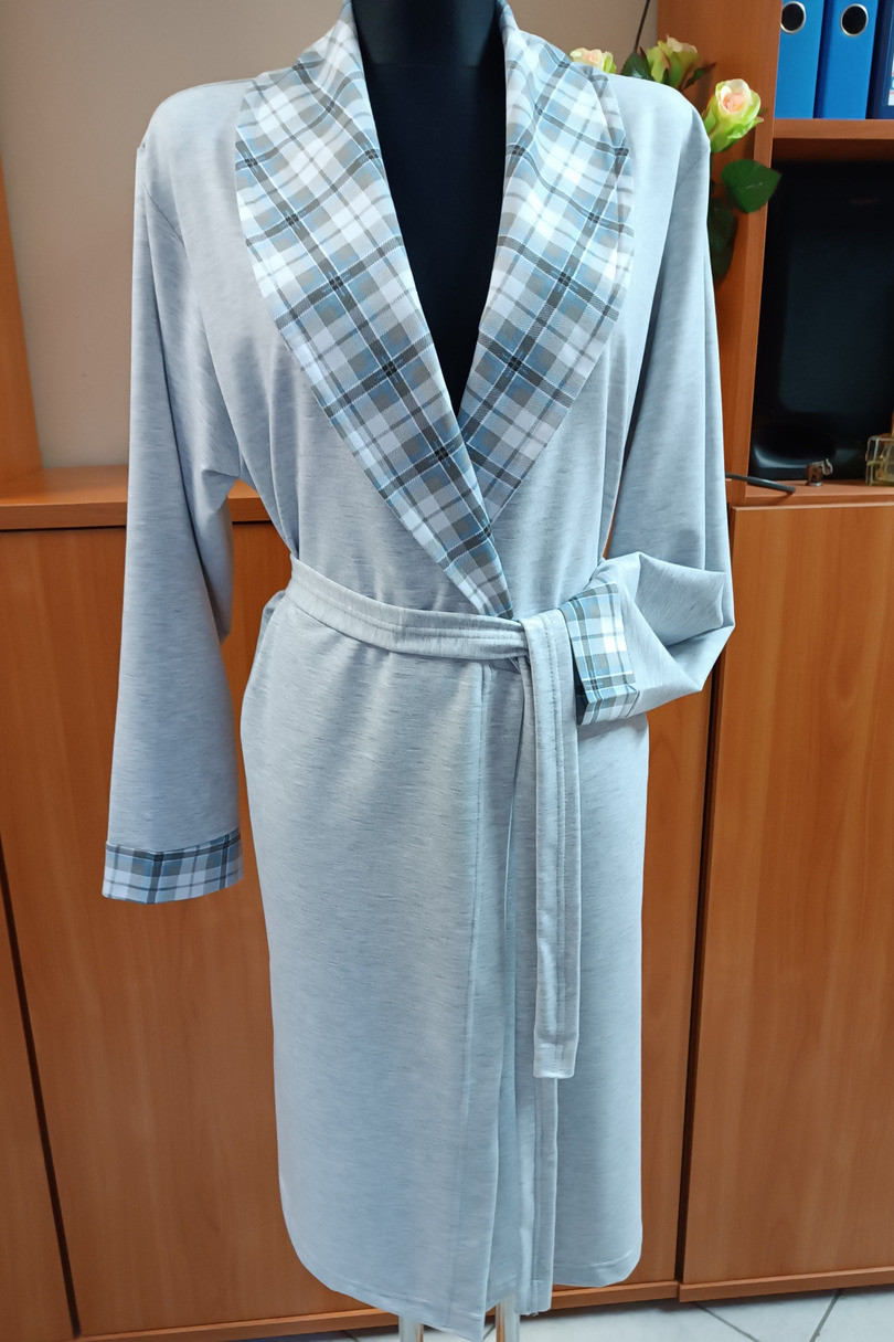 Dámsky župan so šálovým golierom z bavlny, dlhé rukávy, zaväzovanie v páse.Materiál: 100% bavlna.