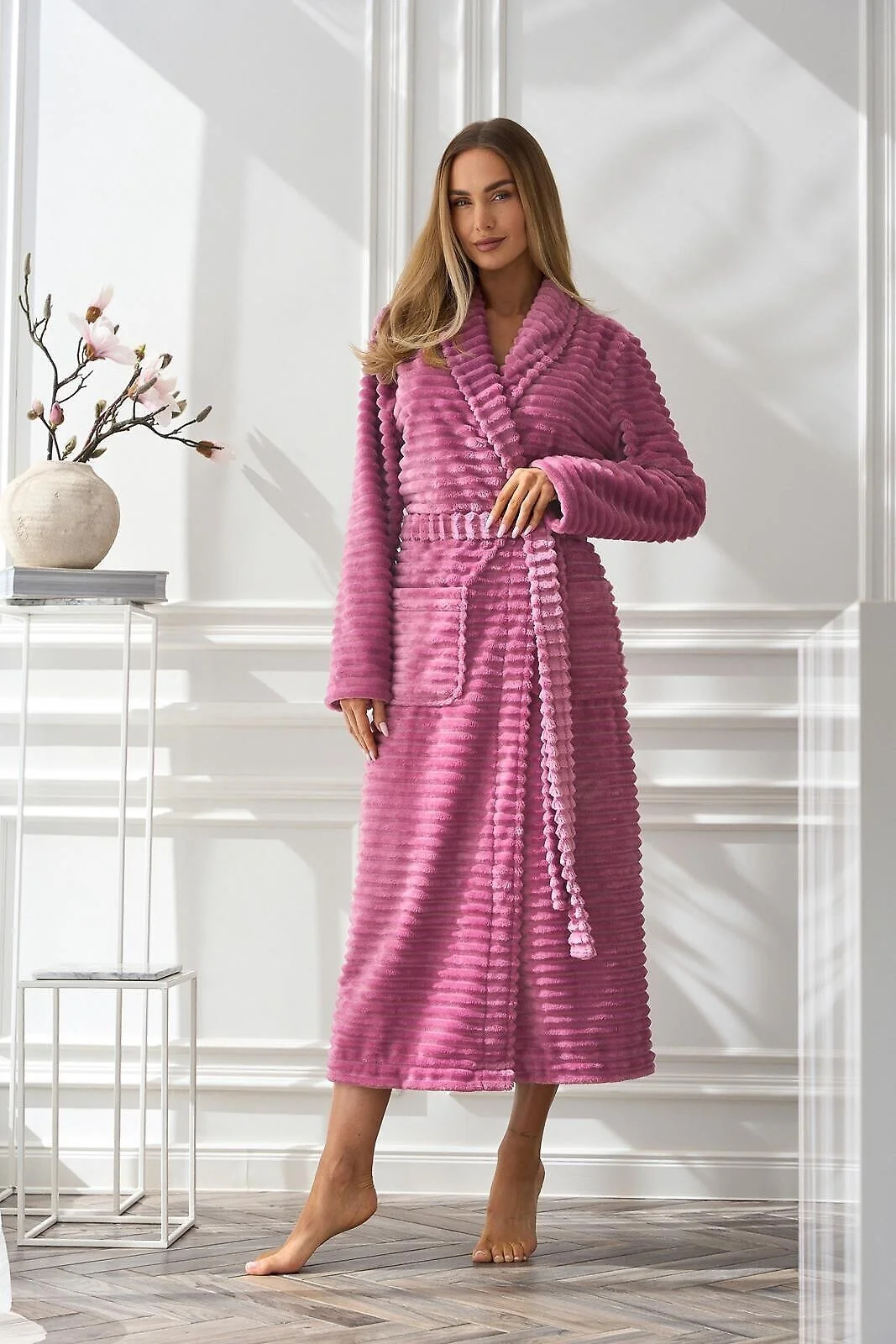 Dámsky dlhý župan - mäkký, hrejivý úplet - textúra s horizontálnymi vypuklými pruhmi - šálový golier - dlhé rukávy - zaväzovanie v páse - pohodlné vrecká na bokoch zloženie: 100 % polyester