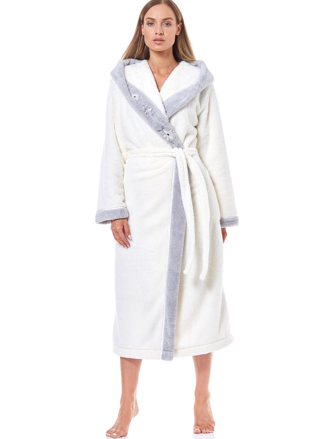 Dámsky župan s kapucňou značky L&L. Dĺžka županu je pod kolená. Na bokoch sú vrecká. Župan sa dá okolo pása previazať opaskom. Župan je veľmi príjemný na dotyk. Materiál: 100 % polyester