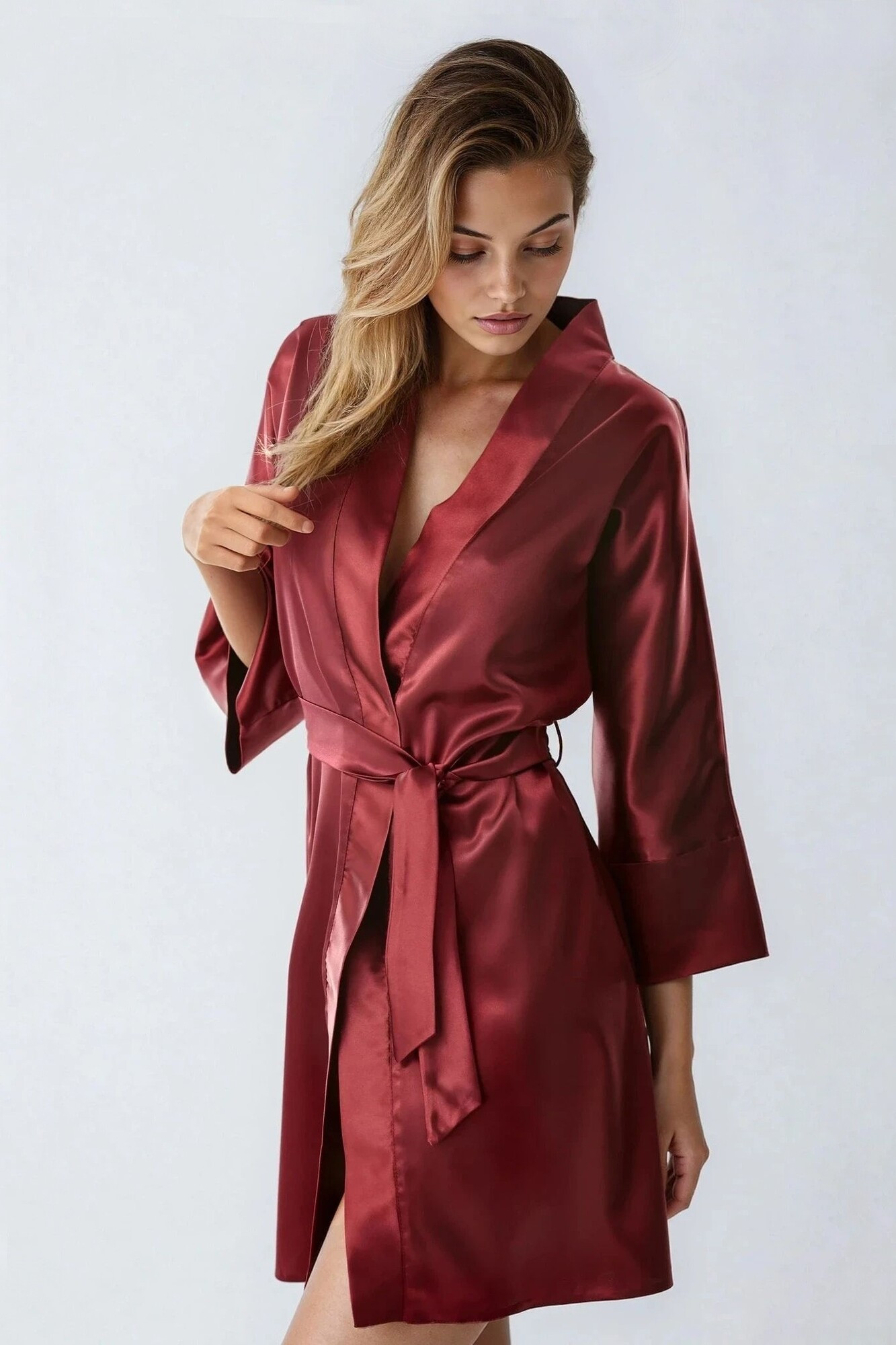 Krásny župan z jemného saténu je nevyhnutnou súčasťou šatníka každej ženy. Je nepostrádateľný v každej situácii. Rukávy, ktoré umožňujú nosiť ho dvoma spôsobmi: s vyhrnutými manžetami alebo s jednoduchými rukávmi. Jednoduchý krátky saténový župan je obdivovaný pre svoju eleganciu. Panama je zabalená v elegantnej veľkej škatuli, takže ak hľadáte nápady na darčeky - je to ideálne riešenie. 97% polyester 3% elastan Pokyny na údržbu