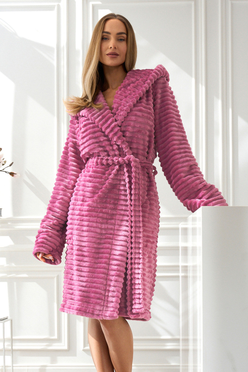 Dámsky župan Robin 2416 L&L je ideálnou voľbou pre ženy, ktoré oceňujú pohodlie a útulný štýl. Je vyrobený zo super mäkkej pleteniny, obopína telo a poskytuje príjemné teplo počas chladnejších dní. Model má praktickú kapucňu, ktorá mu dodáva šarm a funkčnosť. Zaväzovanie v páse umožňuje tesné priliehanie a vrecká vo výške bokov zvyšujú pohodlie. Vďaka krátkej dĺžke župan pôsobí moderne a ľahko, pričom zostáva veľmi praktickým kúskom domáceho šatníka.