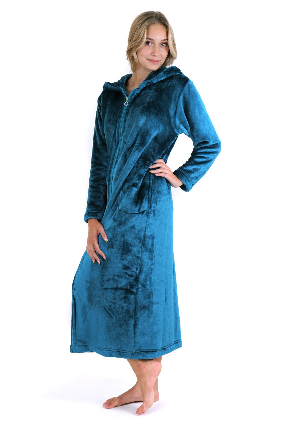 Dlhý dámsky župan Siena s kapucňou na zips pre chvíle odpočinku a relaxácie. ležérny strih s kapucňou a zapínaním na zips dve vrecká v bočnom šve vďaka zipsu sa župan nerozopína a rýchlo sa oblieka a vyzlieka ideálny pre postavy typu "jablko", kde nie je žiaduci opasok na zvýraznenie pásu ľahký hrejivý flanelový fleece s krátkym extra jemným vlasom veľmi jednoduchá údržba a odolnosť voči škvrnám ak potrebujete kratší župan - radi vám upravíme dĺžku podľa vašich potrieb, stačí napísať do poznámky Potrebujete sa vždy rýchlo obliecť a mať istotu, že sa vám župan nechtiac nerozmotá? Potom je tento model tou správnou voľbou.