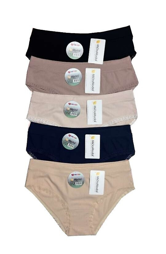 Dámske nohavičky - vyrobené z príjemného, jemne rebrovaného modalu - nohavice zdobené čipkou - dvojitý pásik - balené v plastovom vrecku po 2 kusoch dostupné farby: moka, svetlo béžová, béžová, čierna, ecru, tmavomodrá Zloženie: 89,5 % mikromodal, 10,5 % elastan
