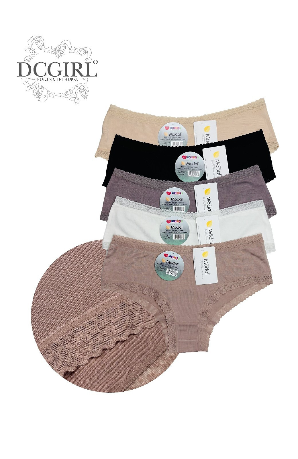 Klasické dámske nohavičky - vyrobené z príjemného modalu - pás a nohavice zdobené čipkou - balené v polyetylénovom vrecku po 12 kusoch dostupné farby: moka, béžová, cappuccino, čierna, ecru Zloženie: 94 % modal, 6 % spandex
