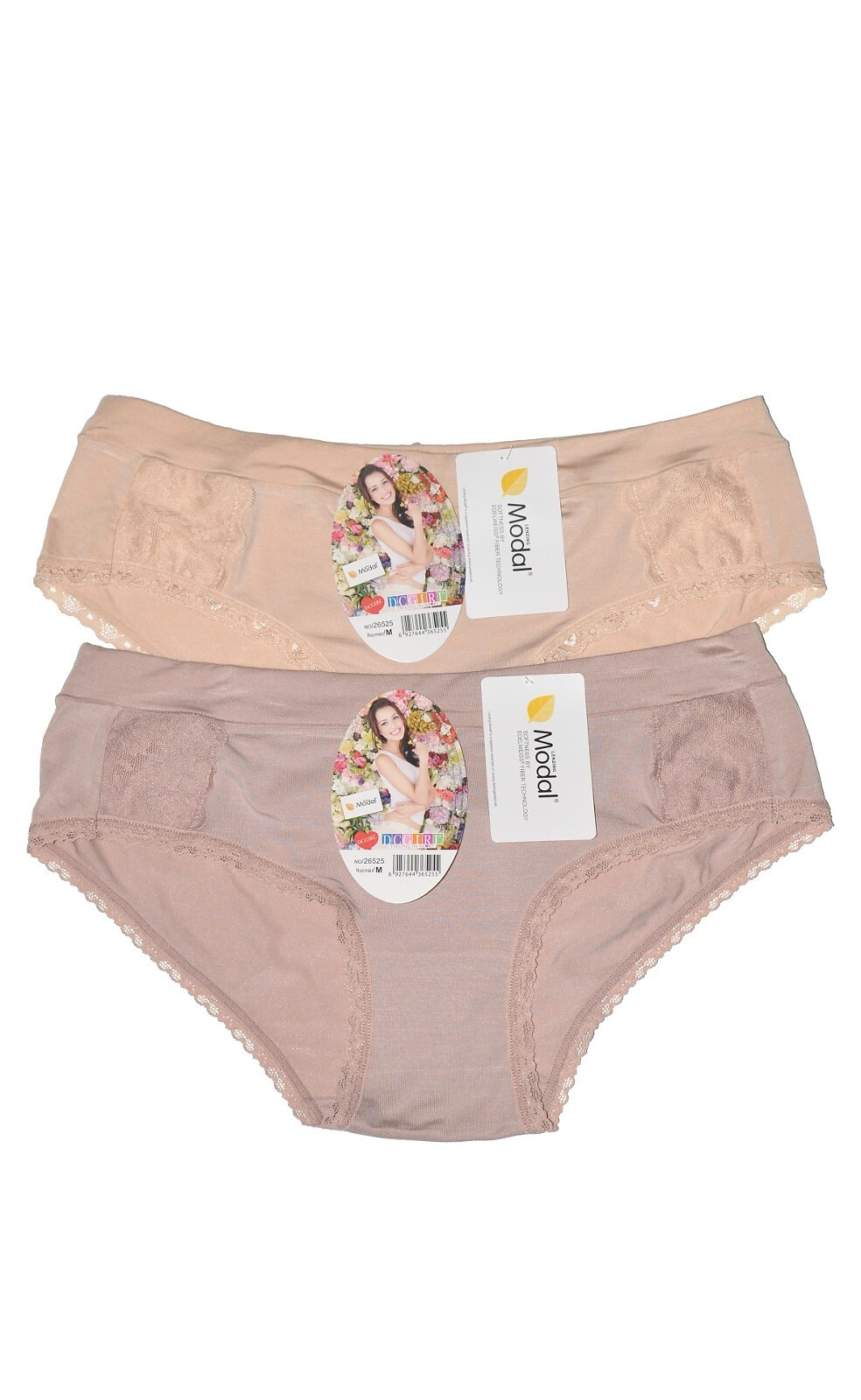 Dámske nohavičky z modalu príjemného na telo - klasický strih - nohavice zdobené čipkovanou stuhou - predná časť s čipkovou vložkou - balené v plastovom vrecku po dvoch kusoch - náhodne vybrané farby: béžová, ecru, čierna, moka Zloženie: 94 % modal, 6 % elastan
