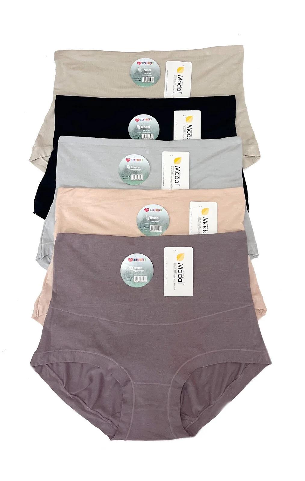 Dámske nohavičky - modal jemný na tele - plný, priliehavý strih - široký dvojitý látkový pás - balené v polyetylénovom vrecku po 12 kusoch - farby dostupné v náhodnom balení: moka, béžová, sivá, čierna, piesková - dostupné veľkosti: L, XL, 2XL Zloženie: 94 % modal, 6 % elastan