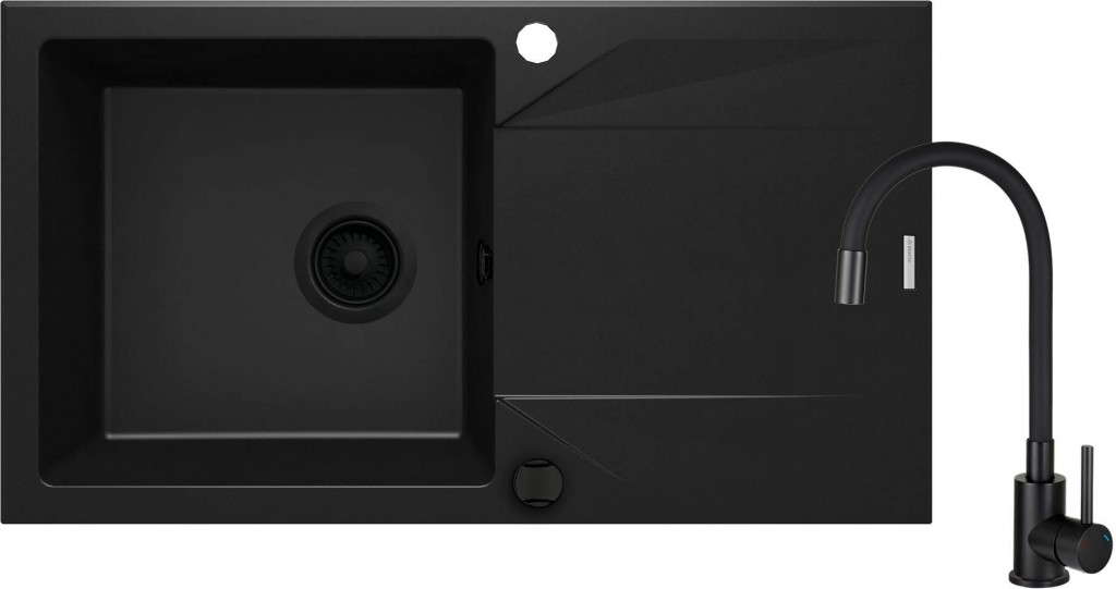 Granitový drez s batériou tvorí kompletnú kuchynskú zostavu. Bola vyrobená z odolnej prírodnej žuly, ktorá je odolná nielen voči vysokej teplote a jej výkyvom, ale aj nárazom a zmene farby, v súlade s európskou normou PN-EN 13310. Navyše je obohatená o hydrofóbnu vrstvu, ktorá uľahčuje tok jednotlivých kvapiek. V rovnakej farbe je aj vodovodná batéria s pohodlnou výlevkou. Vlastnosti žuly Deante: odolnosť proti nárazu, vysokej teplote, zmene farby, tepelnému šoku Najdlhšia záruka 18 rokov Kovanie s automatickým uzáverom odtoku Hydrofóbne vlastnosti odpudzujú molekuly vody Obojstranný drez - inštalujte s misou vľavo alebo vpravo Priestorovo úsporný sifón na uľahčenie napr. triedenia odpadu Montážne puzdro uľahčuje inštaláciu batérie Vrátane spojovacích hadíc Zariadenie jednotne sfarbené v hmote Inovatívne odolný a ľahko čistiteľný povlak Nero Ponuka zahŕňa špeciálny bezpečný prostriedok na čistené povrchy Batéria je vybavená perlátorom, ktorý prúd prevzdušňuje Drez je vybavený príslušenstvom s pripojením na umývačku (GT) Ean: 5907650819493