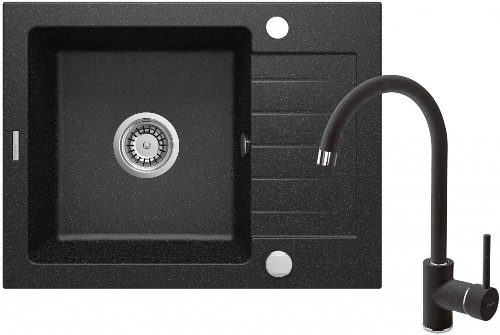 Granitový drez s batériou tvorí kompletnú kuchynskú zostavu. Bola vyrobená z odolnej, prírodnej žuly, ktorá je odolná nielen voči vysokej teplote a jej výkyvom, ale aj nárazom a zmene farby, v súlade s európskou normou PN-EN 13310. Navyše bola obohatená o hydrofóbnu vrstvu čo uľahčuje tok jednotlivých kvapiek. V rovnakej farbe je aj vodovodná batéria s pohodlnou výlevkou. Praktický 1-miskový drez s odkvapkávačom je perfektným riešením v malých kuchyniach a štúdiových bytoch s kuchynským kútom. Funguje aj ako sušička, profilovaný povrch účinne odvádza vodu stekajúcu z riadu alebo umytého jedla. Vlastnosti žuly Deante: odolnosť proti nárazu, vysokej teplote, zmene farby, tepelnému šoku Kovanie s automatickým uzáverom odtoku Hydrofóbne vlastnosti odpudzujú molekuly vody Drez je vybavený príslušenstvom s pripojením na umývačku Ponuka zahŕňa špeciálny bezpečný prostriedok na čistené povrchy Iba tie najlepšie materiály, ktorých kvalita je potvrdená laboratórnymi testami Vrátane spojovacích hadíc Batéria je vybavená perlátorom, ktorý prúd prevzdušňuje Najdlhšia záruka 18 rokov Priestorovo úsporný sifón na uľahčenie napr. triedenia odpadu Obojstranný drez - inštalujte s misou vľavo alebo vpravo Montážne puzdro uľahčuje inštaláciu batérie (GT) Ean: 5908212058732