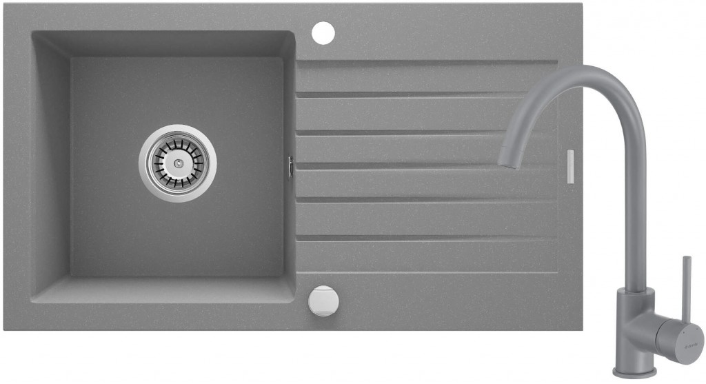 Granitový drez s batériou tvorí kompletnú kuchynskú zostavu. Bola vyrobená z odolnej, prírodnej žuly, ktorá je odolná nielen voči vysokej teplote a jej výkyvom, ale aj nárazom a zmene farby, v súlade s európskou normou PN-EN 13310. Navyše bola obohatená o hydrofóbnu vrstvu čo uľahčuje tok jednotlivých kvapiek. V rovnakej farbe je aj vodovodná batéria s pohodlnou výlevkou. Praktický 1-miskový drez s odkvapkávačom je perfektným riešením v malých kuchyniach a štúdiových bytoch s kuchynským kútom. Funguje aj ako sušička, profilovaný povrch účinne odvádza vodu stekajúcu z riadu alebo umytého jedla. Vlastnosti žuly Deante: odolnosť proti nárazu, vysokej teplote, zmene farby, tepelnému šoku Drez je vybavený príslušenstvom s pripojením na umývačku Kovanie s automatickým uzáverom odtoku Hydrofóbne vlastnosti odpudzujú molekuly vody Povrchová úprava obohatená iónmi striebra dodáva antiseptické vlastnosti Ponuka zahŕňa špeciálny bezpečný prostriedok na čistené povrchy Vrátane spojovacích hadíc Batéria je vybavená perlátorom, ktorý prúd prevzdušňuje Najdlhšia záruka 18 rokov Priestorovo úsporný sifón na uľahčenie napr. triedenia odpadu Obojstranný drez - inštalujte s misou vľavo alebo vpravo Montážne puzdro uľahčuje inštaláciu batérie (GT) Ean: 5908212074923