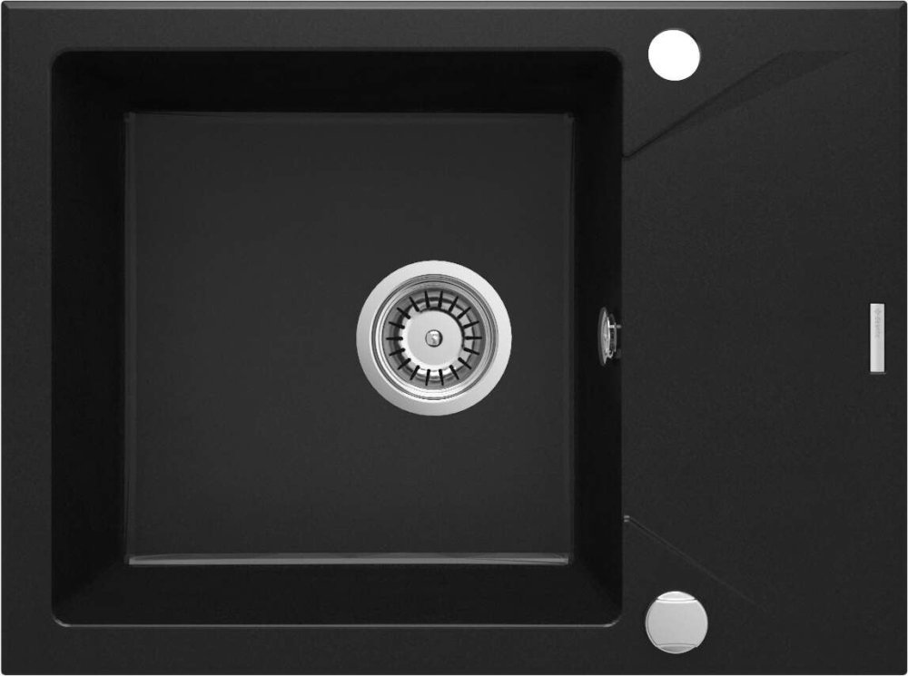MEXEN/S MEXEN/S - Carlos granitový drez 1.5 vrátane batérie Flora, čierna/srebrny metalik 6518-73-670401-07-B