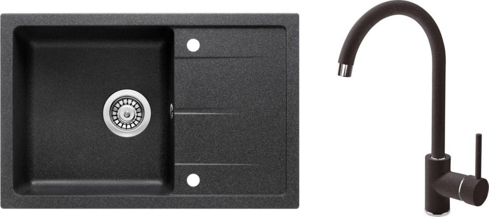 MEXEN/S MEXEN/S - Bruno granitový drez 1 s odkvapkávačom vrátane batérie Elia, čierna 6513-77-670101-50-B