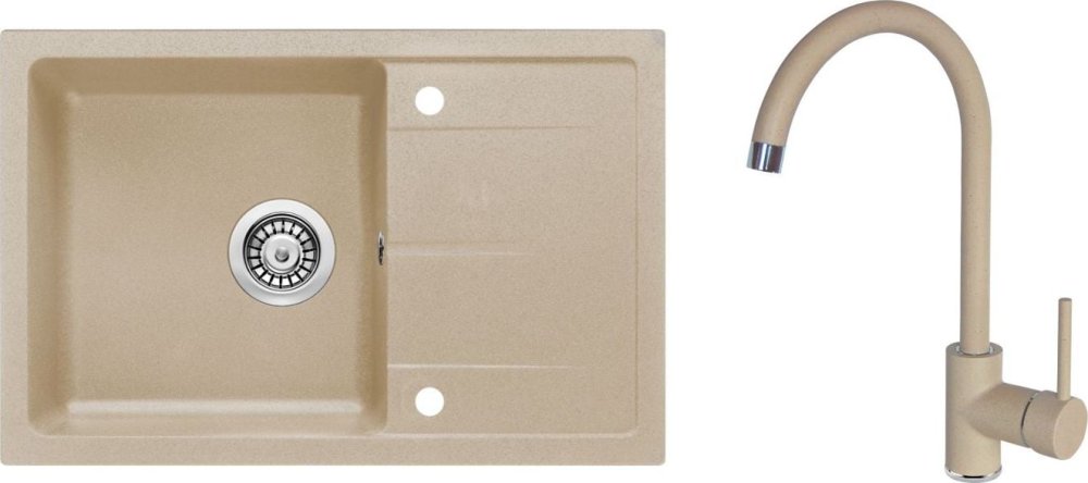 MEXEN/S MEXEN/S - Enzo granitový drez 1-miska s odkvapkávačom vrátane batérie Flora, biela 6506-20-670401-02