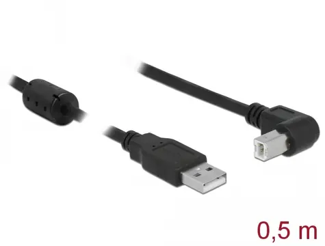 Delock Kábel USB 2.0 Typ-A (M) - USB 2.0 Typ-B (M) pravouhlý 0.5m čierna