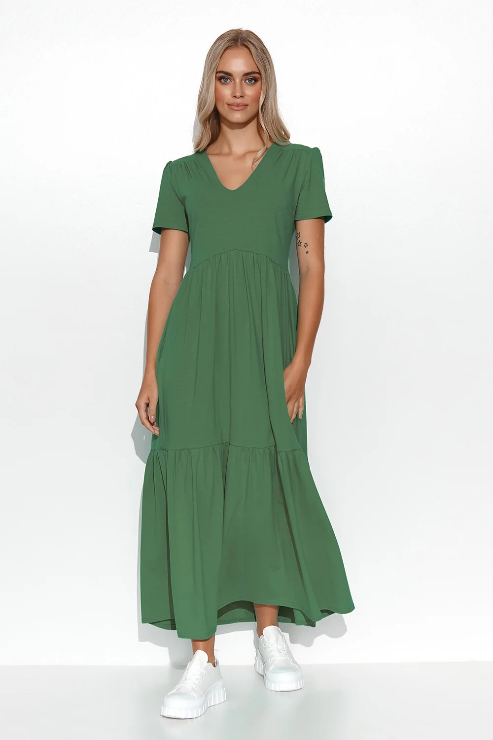 Sukně jsou nepochybně jedním z nejženskějších kusů dámského šatníku. Není divu, právě ony přidávají půvab a dívčí kouzlo. Maxi pletená sukně je ušita v velmi klasickém střihu, který z téměř každé ženy dělá píšťalku. Pohodlná pletenina zajišťuje pocit volnosti, krátký rukáv zakrývá ramena v jejich nejširších oblastech. Výstřih typu v-neck prodlužuje krk, zatímco lemování v oblasti pasu zdůrazňuje nejužší oblast ženské postavy, dodávajíc lehkost. Lehké volány umístěné na několika místech po celé délce sukně dodají romantický charakter každému stylu s touto kreací v hlavní roli. Maxi sukně v jednobarevném provedení nepotřebuje mnoho doplňků, i když je také ráda přijímá. Sportovně s oblíbeným batohem a teniskami nebo elegantně s podpatky a kabelkou. Bavlna 95% Elastan 5 % Veľkosť Dĺžka Obvod bokov Obvod cez prsia Obvod pása 36 134 cm 128 cm 80 cm 76 cm 38 134 cm 132 cm 84 cm 80 cm 40 134 cm 136 cm 88 cm 84 cm 42 134 cm 140 cm 92 cm 88 cm