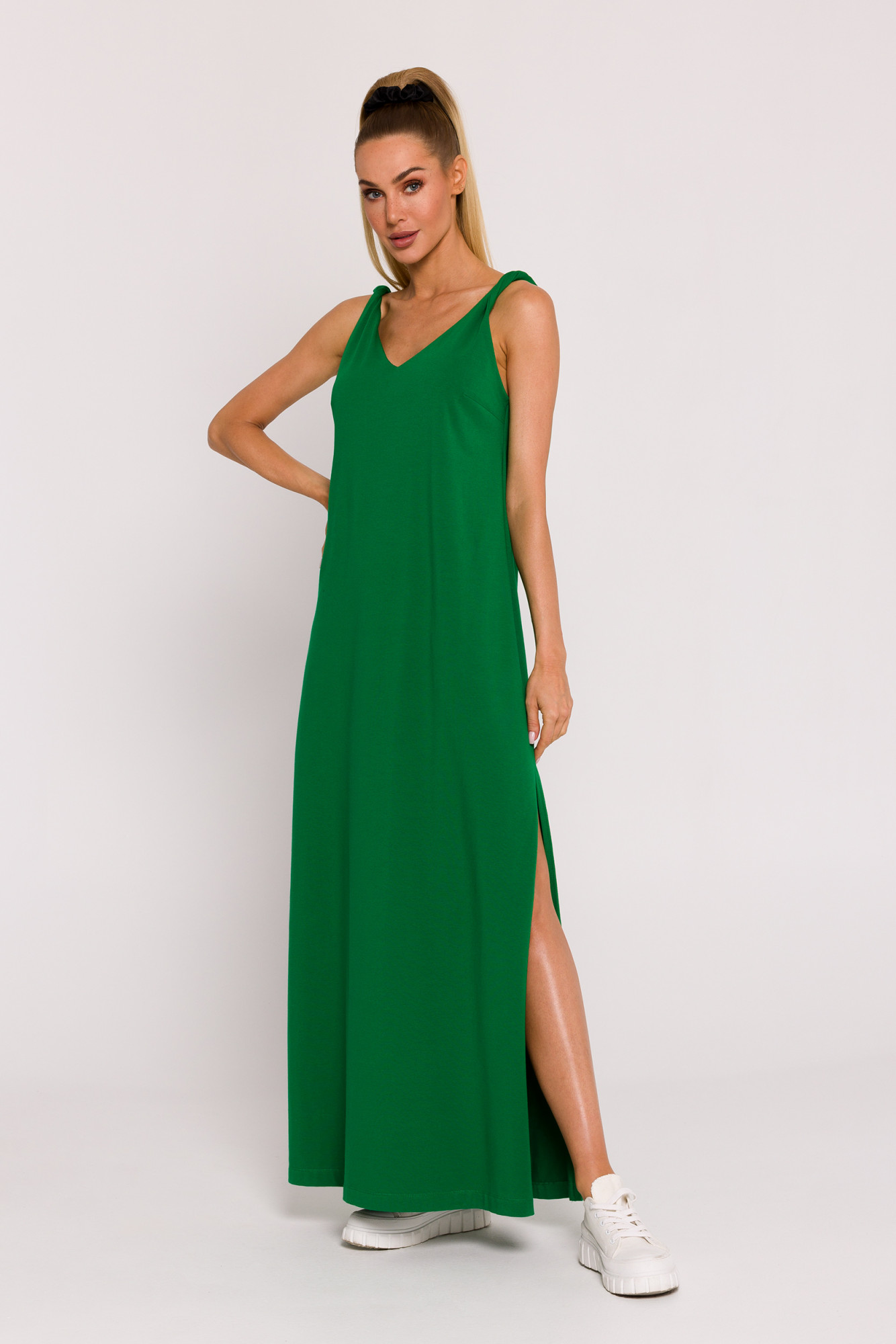 Pletené šaty jsou jedinečným produktem vytvořeným pro ženy, které si cení volnosti pohybu, pohodlí a módního stylu. Návrh a výroba probíhaly v Polsku, což zaručuje vysokou kvalitu zpracování a smysl pro detail. Šaty se prezentují oversize stylem, díky němuž se žena, která je nosí, cítí nejen pohodlně, ale také v souladu s aktuálními módními trendy. Střih do A dodává šatům volný, vzdušný charakter a zároveň zdůrazňuje jemnost a ženskost. Díky modelu šatů přes ramena je jejich nošení mimořádně pohodlné a zároveň zůstávají módním a stylovým kouskem šatníku. Kroucená ramínka dodávají šatům lehkost a zdůrazňují nonšalantnost a ležérnost. Výstřih šatů je vpředu řešen do tvaru písmene V, což jim dodává jemný a elegantní nádech. Nicméně právě hluboký výstřih s ozdobným třpytem umístěným na zádech dělá šaty tak nápadnými. Blinkr je pečlivě vyroben, dodává šatům jemný nádech a podtrhuje jejich design. bavlna 95%Elastan 5% Veľkosť Celková dĺžka Obvod cez prsia L143 cm102 cmM142 cm97 cmS141 cm92 cmXL144 cm107 cmXXL145 cm112 cm