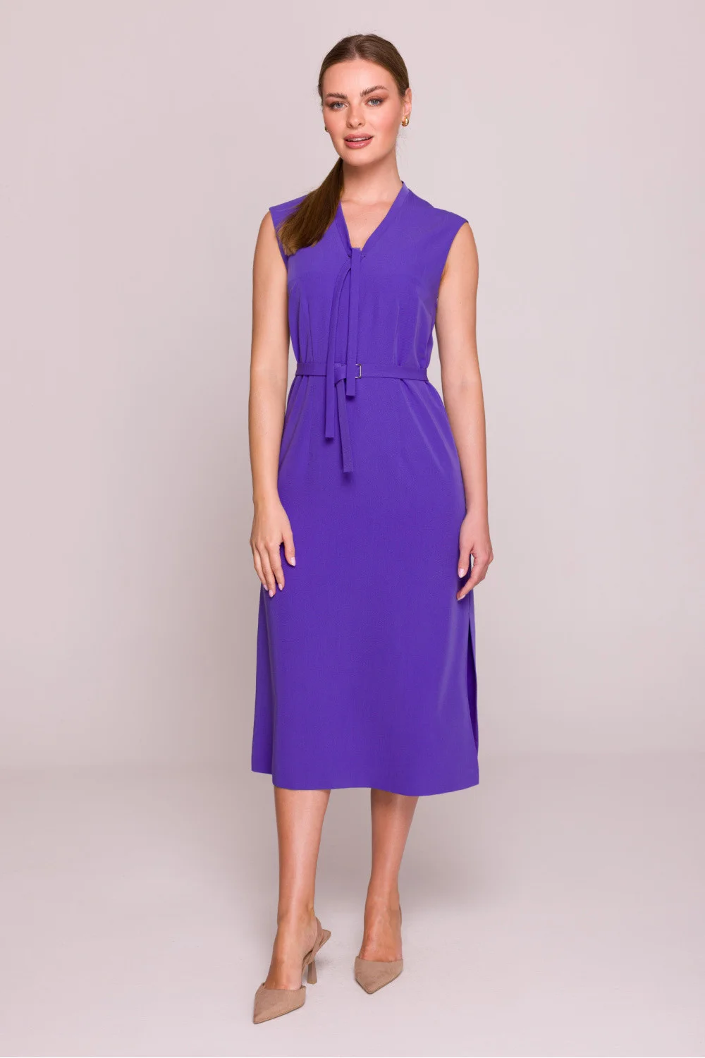 Objevte eleganci a pohodlí v jednom díle díky této jedinečné midi šaty. Navržená a ušitá v Polsku, kombinuje klasický styl s moderními detaily, skvěle odpovídající potřebám současné ženy. Šaty jsou vyrobeny z hladké, lehce elastické látky s saténovým zpracováním, která se krásně přizpůsobuje postavě, poskytující pohodlí při nošení. Její jednoduchý střih s lehce zdůrazněnou talií a tvar lehkého trapézu zaručují elegantní vzhled a volnost pohybu. Midi délka sahající za kolena jí dodává univerzální charakter. Výstřih ve tvaru písmene V s uvázáním dole přidává šatům jemnou smyslnost a umožňuje individuální přizpůsobení. Bez rukávů je ideální volbou na teplejší dny. Praktické rozparky na bocích nejen usnadňují pohyb, ale také přidávají kreaci špetku pikantnosti. V pasu je látkový pás s elegantní sponou, který dokonale zdůrazňuje postavu. Šaty se zapínají na skrytý zip umístěný po straně, což zajišťuje sn elastan 5% Polyester 65% Viskóza 30% Veľkosť DĺžkaObvod bokov Obvod hrudníka Obvod pása L120 cm110 cm102 cm94 cmM119 cm105 cm97 cm89 cmS118 cm100 cm92 cm84 cmXL121 cm115 cm107 cm99 cmXXL122 cm120 cm112 cm104 cm