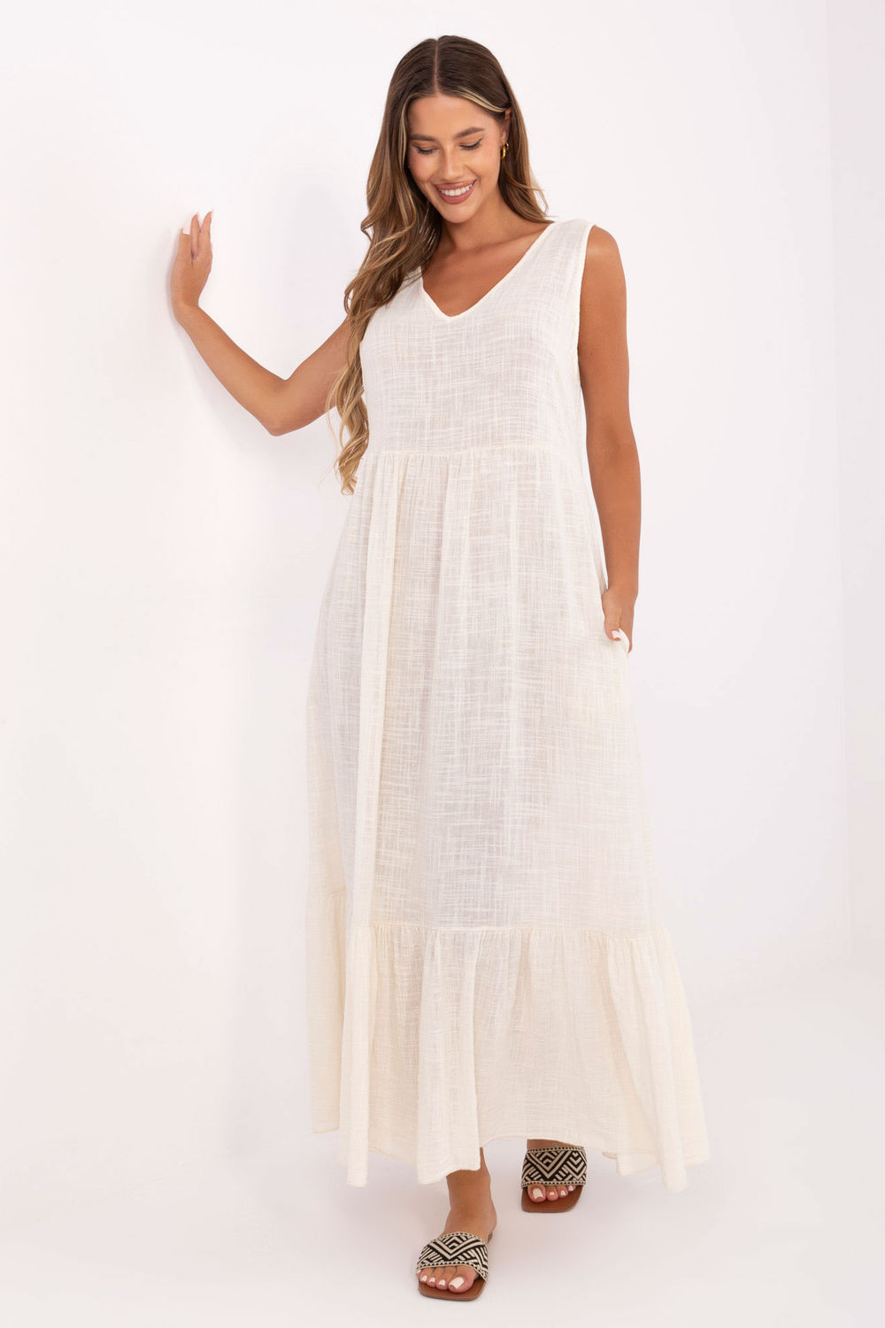 Tieto dlhé letné šaty so stupňovitým strihom sú ideálnou voľbou na každodenné teplé dni. Sú vyrobené z prírodnej bavlny, poskytujú priedušnosť a pohodlie pri nosení aj v najväčších horúčavách. Široké ramienka a srdiečkový výstrih jemne zvýrazňujú hornú časť postavy, zatiaľ čo voľne padajúca spodná časť zakončená volánom dodáva ľahkosť a ženský pôvab. Šaty nemajú zapínanie, čo uľahčuje ich obliekanie a zaručuje pohodlie počas celého dňa. Hladký vzor je univerzálny a ľahko sa štylizuje a praktické vrecká v švíkoch na bokoch dodávajú funkčnosť. Sú nevyhnutnou súčasťou vášho letného šatníka, ideálne na prechádzky, nákupy alebo stretnutia vonku. 100 %bavlna Veľkosť Obvod hrudníka Obvod pása L91 cm84-90 cmM86 cm78-86 cmS82 cm72-80 cmXL96 cm88-96 cm