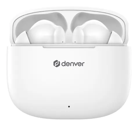 Denver TWE-48 biela / bezdrôtové slúchadlá s mikrofónom / Bluetooth 5.3 / až 6 hodiny / nabíjacie púzdro