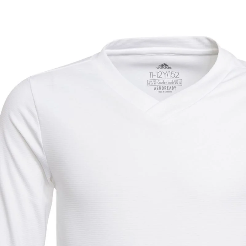 Właściwości:koszulka dla juniorów adidas sprawdzi się podczas rozgrywek piłkarskichtechnologia AeroReady odprowadza wilgoćwygodny, dopasowany krój i kołnierz obszyty taśmą, dają swobodę i zapobiegają otarciomdekolt w kształcie litery V ze ściągaczemMateriał:poliesterKolor:biały