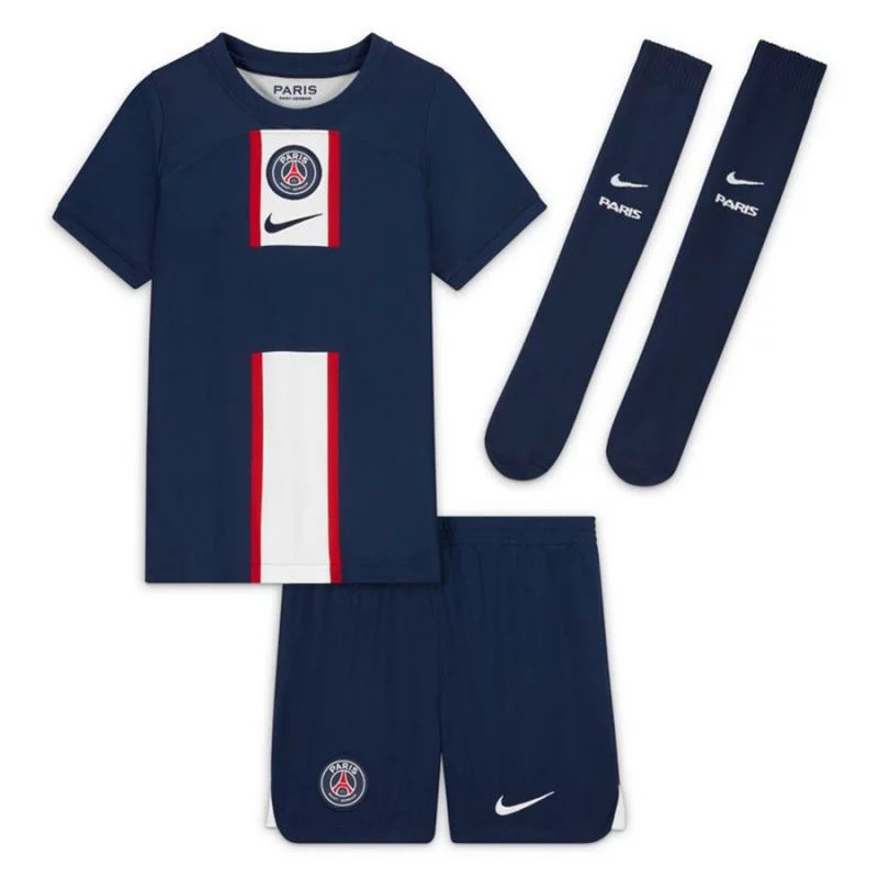 Detský set Nike PSG 2022/23 Home Little Kids DJ7897-411 Vlastnosti: súprava značky Nike ideálna pre každého malého futbalistu skladá sa z dresu, šortiek, ponožiek a trenírok dres štandardného strihu s krátkymi rukávmi krátke šortky s elastickým pásom logo výrobcu Materiál: materiál: Polyester