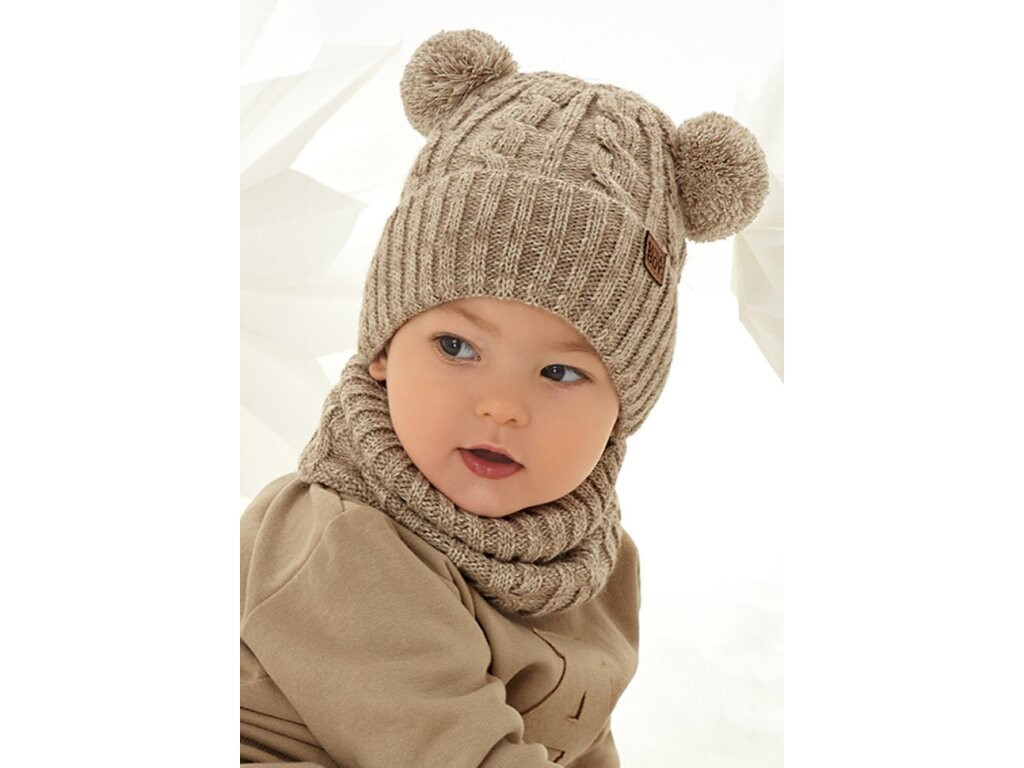 Súprava pre chlapcov - čiapka podšitá bavlnou z vnútornej strany - s dvoma bambuľkami - so strapcami na okraji - roláková súprava - dostupné farby: béžová, tmavomodrá, kakaová, sivá Zloženie: 90 % akryl, 10 % vlna, podšívka 95 % bavlna, 5 % elastan
