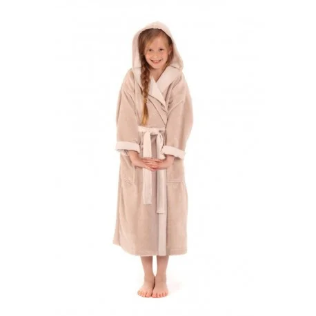 Detský mäkký savý župan s kapucňou a vreckami. Kolekcia Tampa je už niekoľko rokov jednou z najobľúbenejších u všetkých vekových skupín. Skvelý funkčný materiál kombinuje vlastnosti jemnej česanej bavlny v slučkách na rubovej strane a ľahkého, nadýchaného velúru z mikrovlákna na rubovej strane. Má vynikajúcu savosť, je mäkká na dotyk, ľahká a veľmi ľahko sa udržiava. Má stabilnú farbu a tvar.
