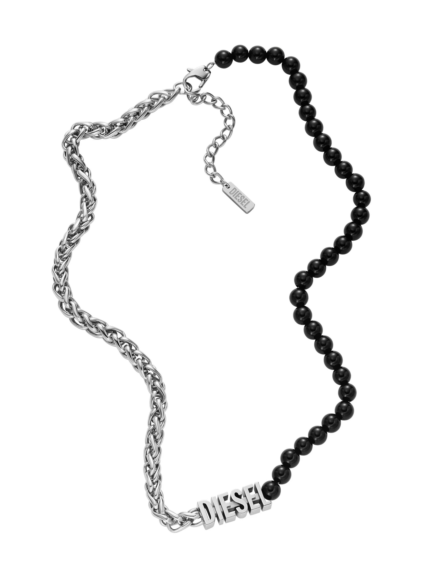 Diesel Moderný oceľový náhrdelník s čiernym achátom DX1543040