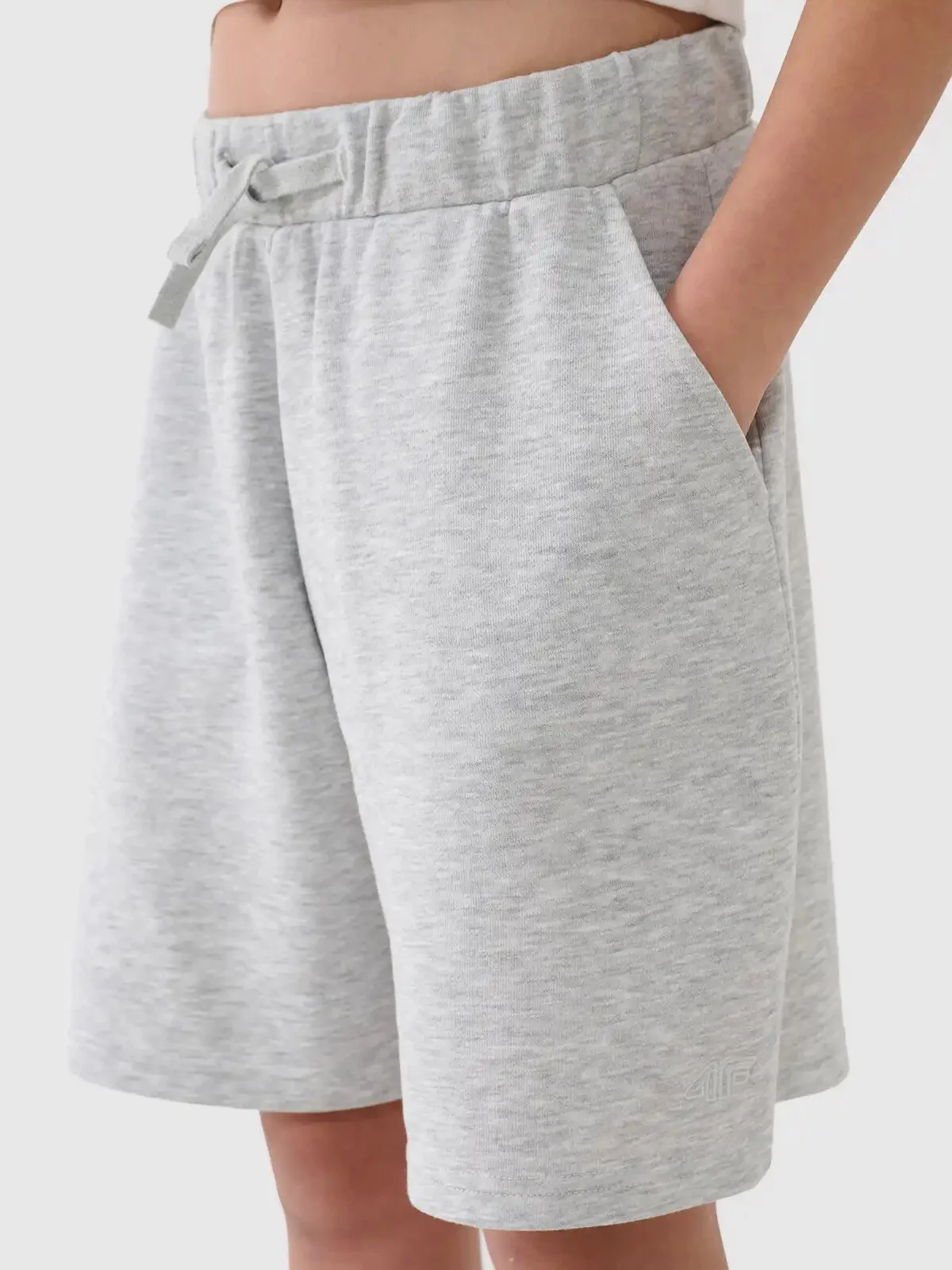 Teplákové šortky sú ideálnou voľbou na pohodlné nosenie vo voľnom čase a pri športových aktivitách. Sú vyrobené z mäkkého a priedušného materiálu, ktorý zaručuje pohodlie počas celého dňa. Elastický pás so šnúrkou na stiahnutie umožňuje individuálne nastavenie a pohodlné nosenie. Dve bočné vrecká zvyšujú praktickosť. Ideálna voľba pre aktívne dievčatá, ktoré ocenia voľnosť pohybu a štýlový vzhľad.