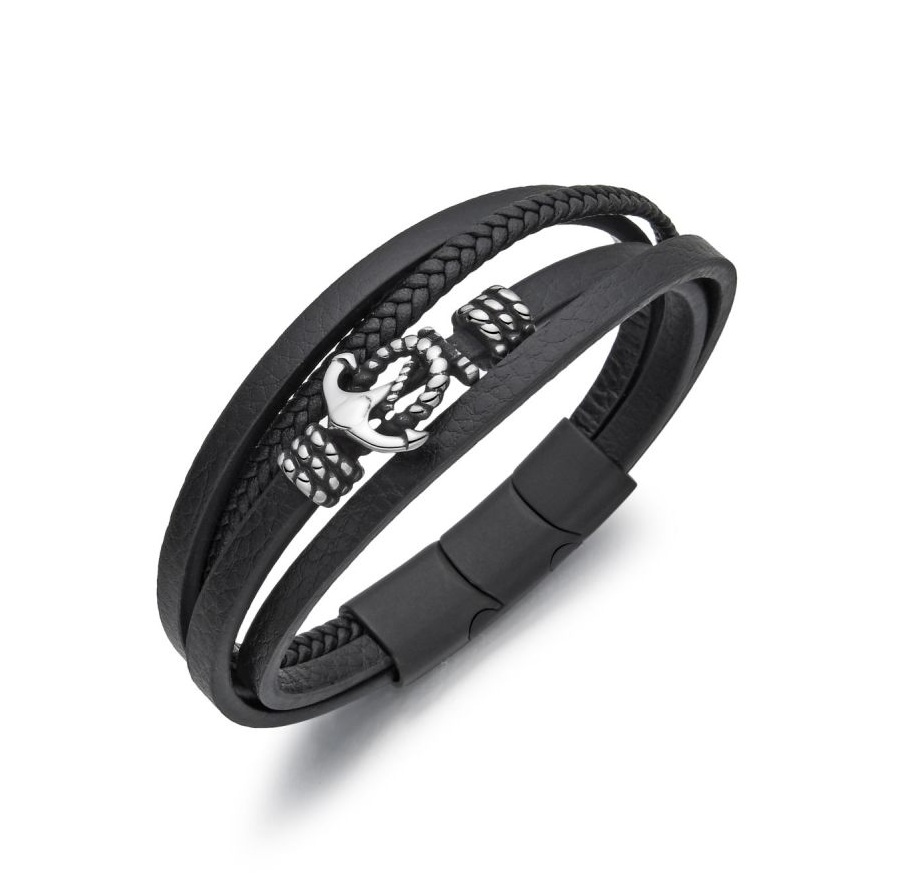 Diverse Čierny kožený náramok pre mužov Kotva B1000853
