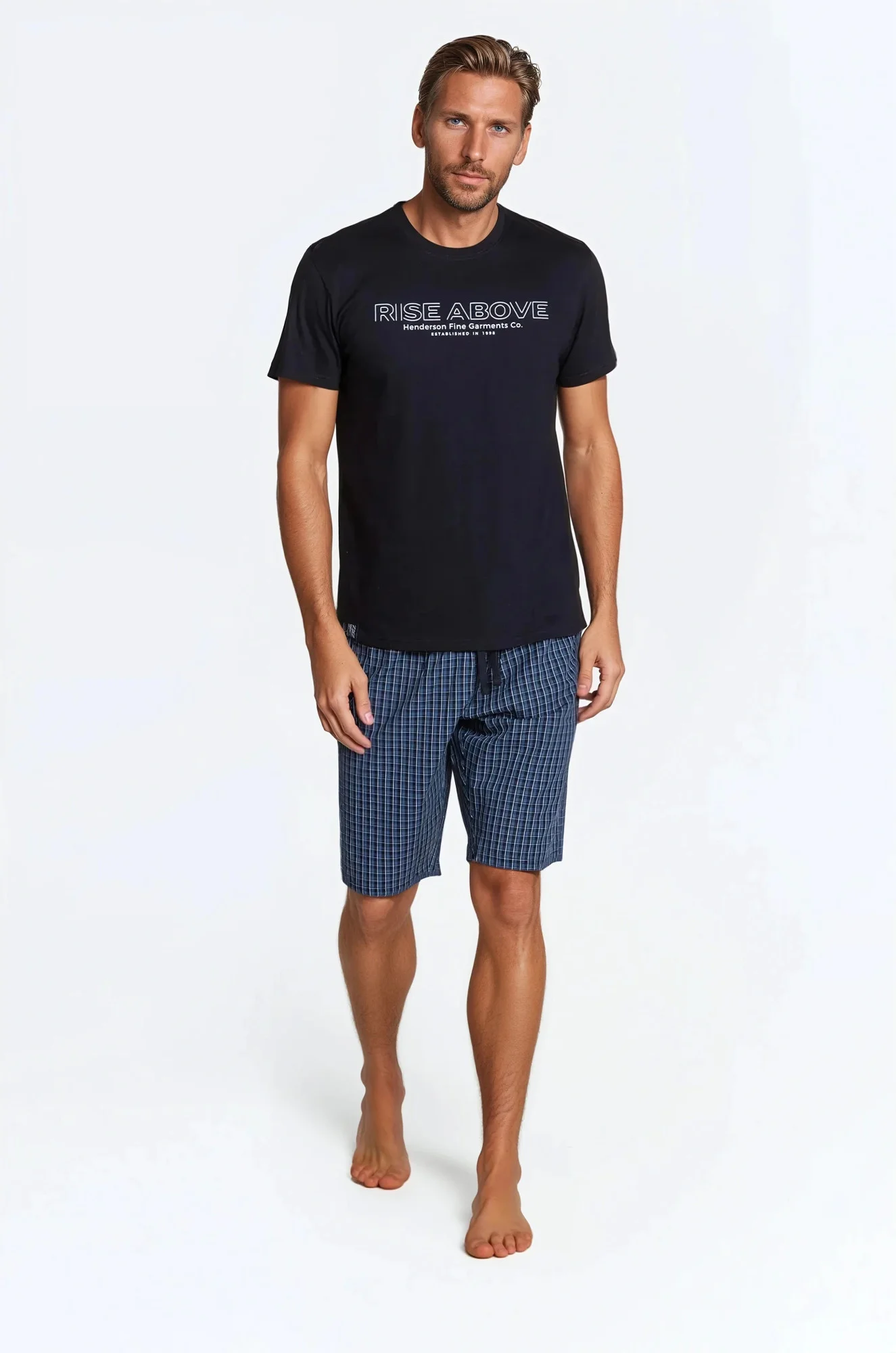 Skvelé pánske pyžamo v atraktívnom farebnom prevedení. Športová, pohodlná verzia v kombinácii s nohavicami pod kolená v módnom kockovanom vzore. Vďaka čiernemu tričku s potlačou v strede budete vyzerať skvele a úplne pohodlne, zatiaľ čo nohavice so zaujímavým klasickým vzorom poskytnú zaujímavý akcent. 100 % bavlna.