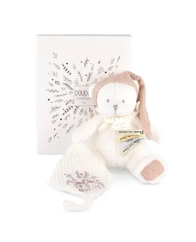 Doudou Darčeková sada Plyšový medvedík s úchytom na cumlík a dečkou ružový 20 cm