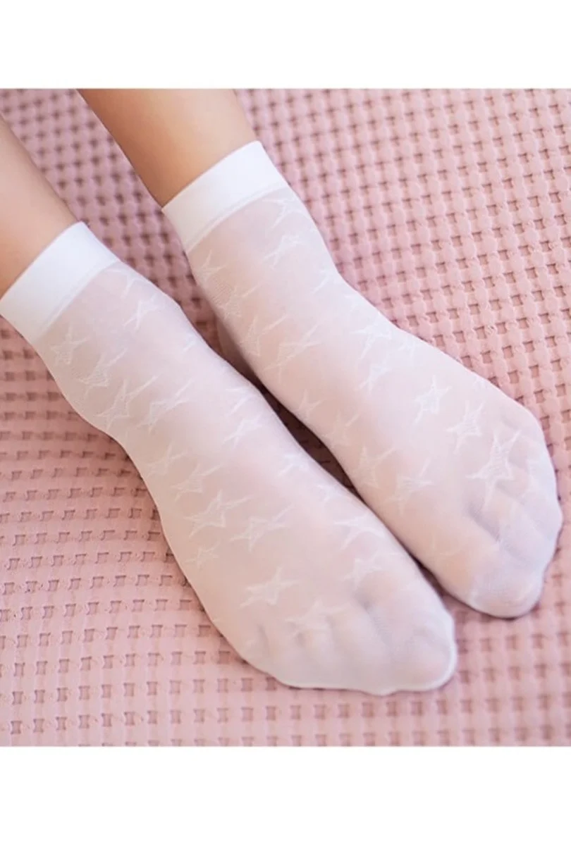 dievčenské vzorované ponožky 20 DEN, vyrobené z pletenej priadze pre zvýšenú odolnosť proti vyťahaniu. Elastické prsty. Celá ponožka pokrytá hviezdičkovým vzorom. .