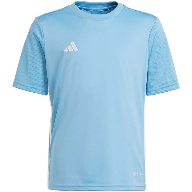 Adidas Table 23 Jersey Jr Vlastnosti:Detský dres adidas je model pripravený na zápas, ktorý vám pomôže zabezpečiť dlhotrvajúce pohodlie.Pravidelný strih so zaobleným výstrihom.Tričko je vyrobené z rýchloschnúcich vlákien a je podporené technológiou Aeroready, ktorá absorbuje vlhkosť.Sieťované rukávy.Polyesterové vlákna vznikajú recykláciou.Vyšívané logo značky na hrudi.Pruhy na bokoch.Materiál:100 % recyklovaný polyesterFarba:modrá