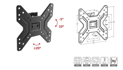 ECG LD 174203 čierna / nástenný držiak na televízie 17 "-42" / VESA 200 x 200 / vzdialenosť od steny 48 / do 25 kg (100000903295)