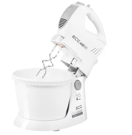 ECG RSM 4052 biela / ručný amp; stolný šľahač / 5 rýchlostí / Turbo / šľahanie / miesenie / misa 3.5 L / metly + háky