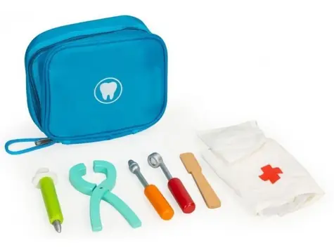 MalPlay DREVENÁ SADA MALÉHO ZUBNÉHO LEKÁRA V KUFRÍKU