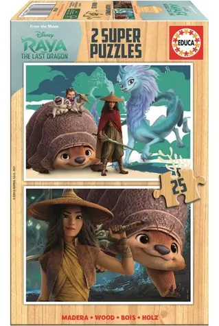 Educa Drevené puzzle Raya a drak / 2x25 dielikov / od 3 rokov