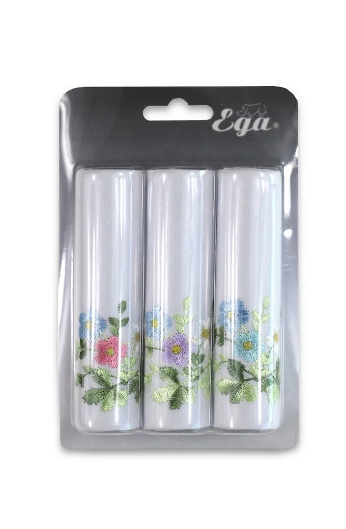 Dámske vreckovky - z hladkej, jemne tkanej bavlny - zdobené farebnou kvetinovou výšivkou - balené po troch kusoch v plastovej škatuľke - veľkosť 30x30 cm - balené v rôznych farebných súpravách - obrázky s náhodne vybranými vzormi farieb Zloženie: 100 % bavlna
