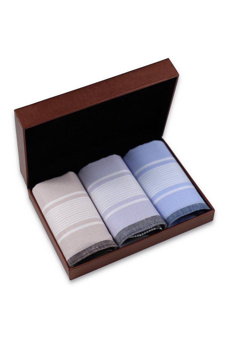 Pánske vreckovky - vyrobené z jemne tkanej bavlny - podšité úzkym plochým švom - pruhovaný vzor - balené po troch v elegantnej škatuľke - veľkosť 40x40 cm - balené v rôznych farebných súpravách Zloženie: 100 % bavlna