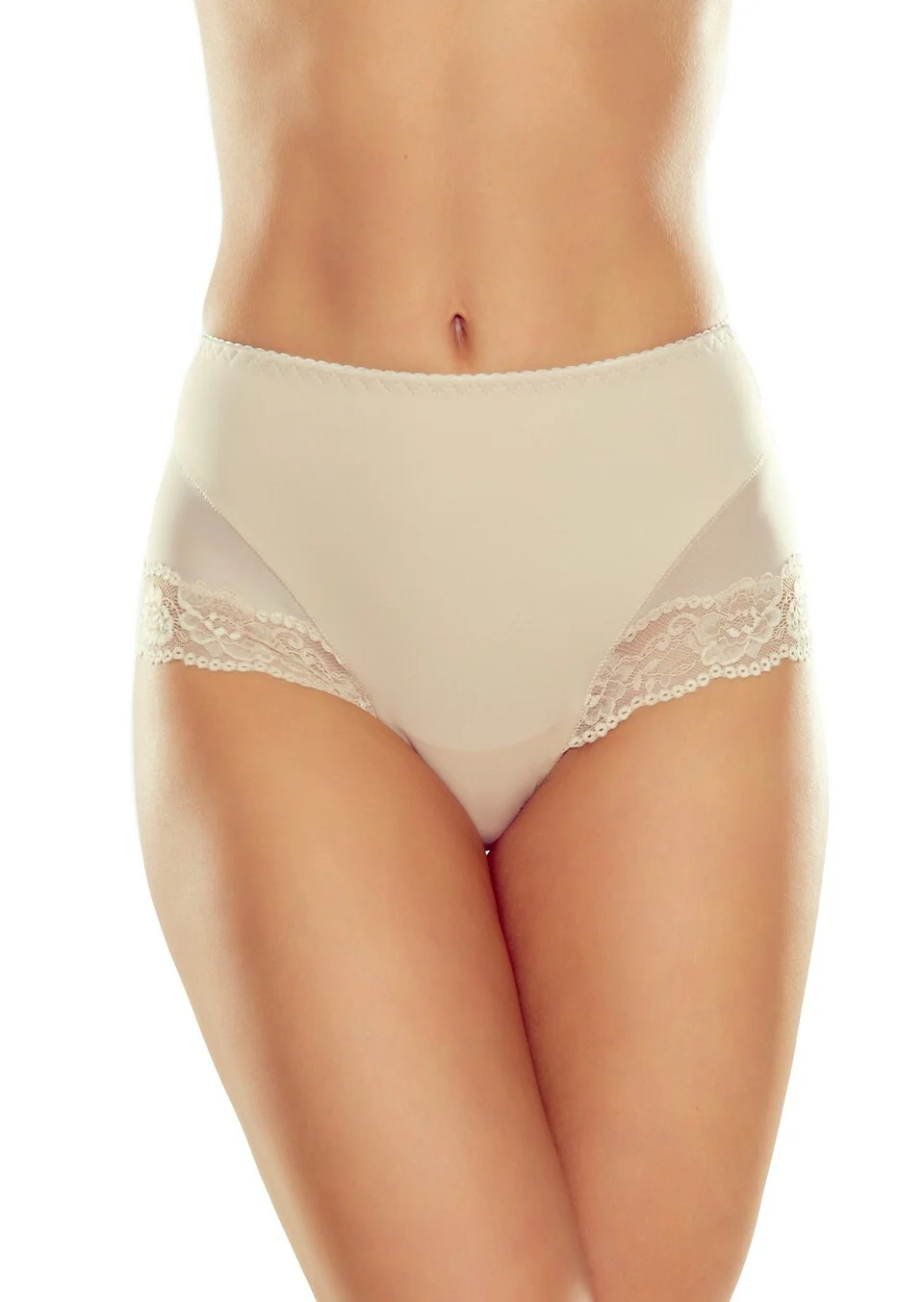 Dámske vstavané nohavičky s vysokou sedmičkou- s jemnou korekciou brucha- elastická sieťovina a čipkované vložky Zloženie: 80% polyamid, 20% elastan