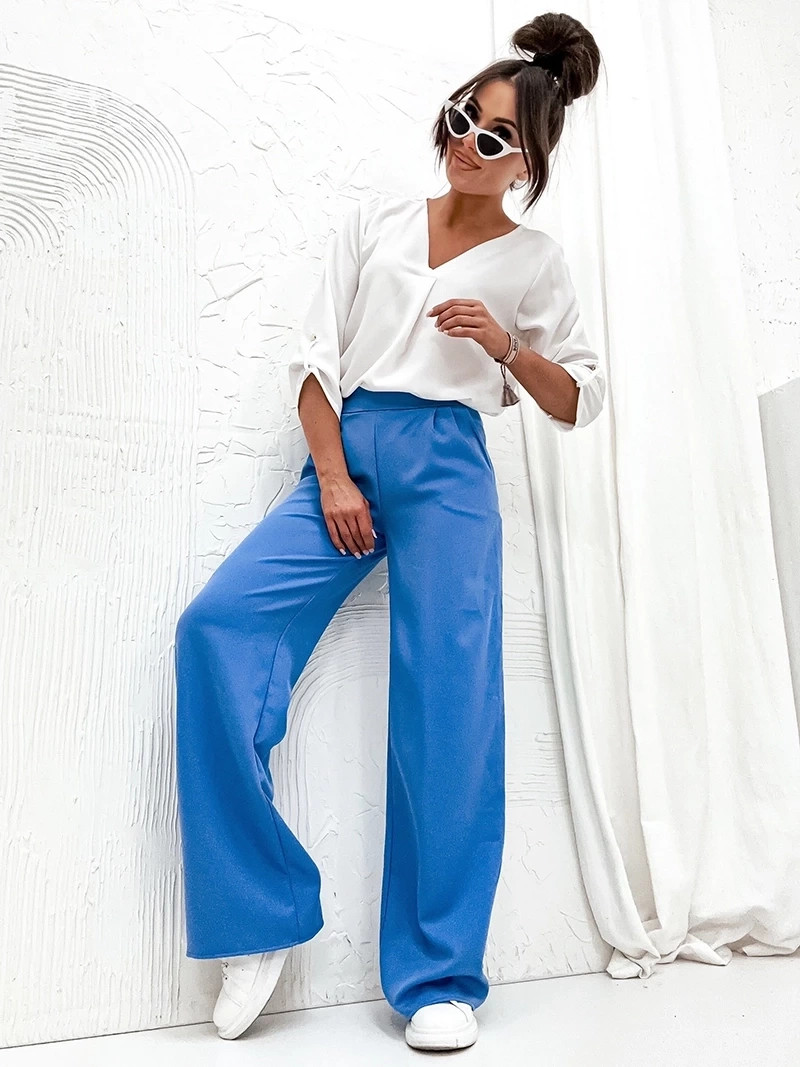Prosím, venujte pozornosť výberu veľkosti podľa nižšie uvedenej tabuľky veľkostí. Veľkosti nezodpovedajú bežne nosenému oblečeniu. Dámske švédske nohavice Nohavice majú stredne vysoký pás a strih. Model má dve vrecká. V páse modelu je gumička. Nohavice sú dlhé a široké. Zloženie: 95% polyester, 5% elastan.