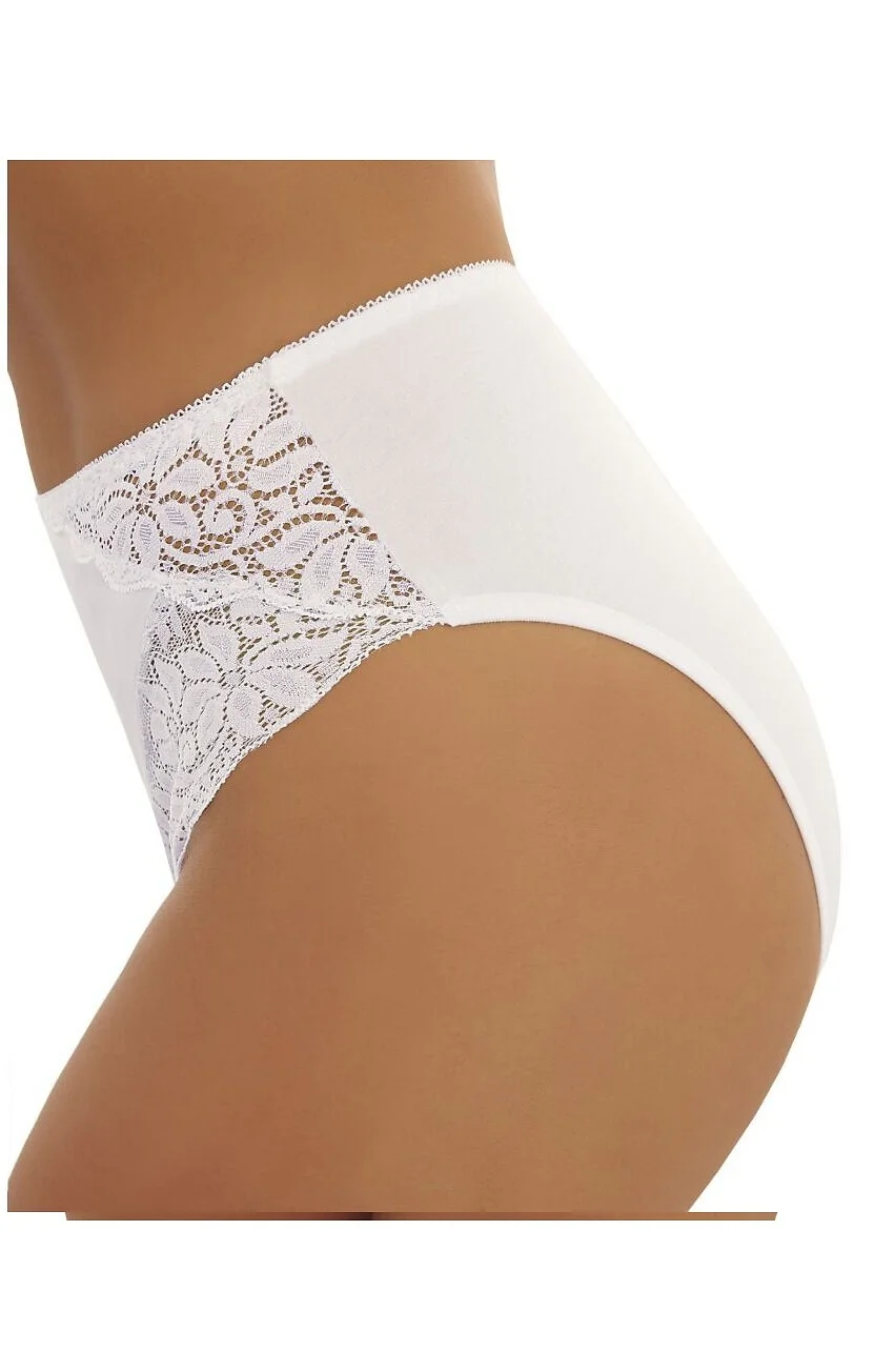 Dámske nohavičky - vysoká línia pásu - tvarované boky - vyrobené z hladkej bavlny v kombinácii s čipkou Materiál: 92 % bavlna, 8 % elastan; čipka 88 % polyamid, 12 % elastan