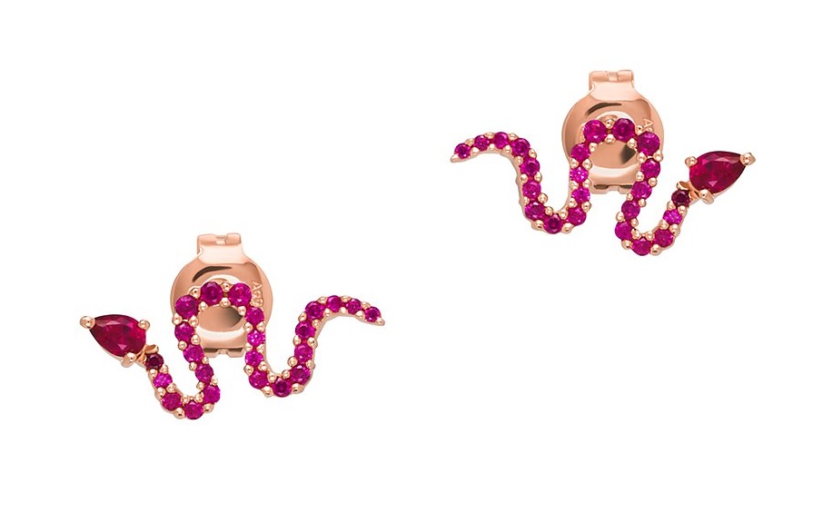 Emporio Armani Pozlátené náušnice Had s fuchsiovými zirkónmi EG3614221