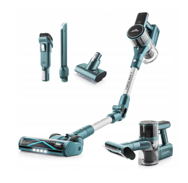 Zvislý vysávač ETA Lunar-423890000 – Efektivita a modernosť vo vašej domácnosti Zvislý vysávač ETA Lunar ETA423890000 je všestranné zariadenie 2 v 1, ktoré kombinuje funkcie zvislého a ručného vysávača. Jeho silný sací výkon a dlhá doba prevádzky až 50 minút z neho robia ideálneho spoločníka na každodenné upratovanie a náročnejšie úlohy. Atraktívna ľadovo tyrkysová farba dodáva moderný vzhľad, ktorý určite doplní každý interiér. Zvislý vysávač ETA Lunar-423890000 – Efektivita a modernosť vo vašej domácnostiAutomatické nastavenie sacieho výkonu s INTELIGENTNÝM SENZOROM PRACHU Vysávač je vybavený inovatívnym INTELIGENTNÝM SENZOROM PRACHU, ktorý automaticky upravuje sací výkon v závislosti od úrovne znečistenia. To šetrí energiu a optimalizuje dobu prevádzky, čím sa upratovanie ešte viac zefektívňuje.Automatické nastavenie sacieho výkonu s INTELIGENTNÝM SENZOROM PRACHUÚčinná 28,8 V lítium-iónová batéria pre dlhé upratovanie Model ETA Lunar používa 28,8 V lítium-iónovú batériu, ktorá poskytuje dlhú dobu prevádzky až 50 minút. Čas nabíjania je iba 4,5 hodiny, čo vám umožňuje rýchlo pripraviť vysávač na ďalšie použitie.Výkonný 400 W digitálny motor pre vysokú účinnosť Vysávač je poháňaný výkonným 400 W digitálnym motorom, ktorý poskytuje vysoký sací výkon až 30 000 Pascalov. Ponúka AUTO režim a tri ďalšie úrovne výkonu, ktoré vám umožňujú prispôsobiť ho typu podlahy a stupňu znečistenia.Výkonný 400 W digitálny motor pre vysokú účinnosťLED osvetlenie pre čistenie v tmavých rohoch LED osvetlenie v štrbinovej hubici umožňuje efektívne čistenie v tmavých rohoch, vďaka čomu je vysávanie ešte pohodlnejšie a dôkladnejšie. LED osvetlenie na čistenie tmavých rohovKefa s technológiou odstraňovania chĺpkov Vysávač je vybavený podlahovou kefou s technológiou odstraňovania chĺpkov, ktorá zabraňuje zamotávaniu chĺpkov do kefy. Dva vymeniteľné valce (univerzálny a jemný FLUFFY) umožňujú efektívne čistenie rôznych povrchov vrátane tvrdých podláh.Kefa s technológiou odstraňovania chĺpkovErgonomický dizajn a praktické detaily pre pohodlné používanie Ergonomická rukoväť a veľká 0,5-litrová nádoba na prach zabezpečujú pohodlné používanie. Flexibilná trubica umožňuje dosiahnuť na ťažko dostupné miesta a praktické príslušenstvo robí z upratovania potešenie. Technické špecifikácie zvislého vysávača ETA Lunar-423890000 Značka: ETADominantná farba: ModráModel: Lunar ETA423890000EAN (GTIN): 8590393366507Napájanie: BezdrôtovéKód výrobcu: ETA423890000Prevádzková doba: Až 50 minútDoba nabíjania: 4,5 hodinyVýkon motora: 400 WSací výkon: Až 30 000 PascalovObjem nádoby na prach: 0,5 lTyp batérie: 28,8 V Li-IonTyp kefy: FLUFFY (šetrná k tvrdým podlahám)Technológia odstraňovania chĺpkov: TECHNOLÓGIA ODSTRAŇOVANIA CHĹPKOVNastaviteľná trubica: ÁnoLED podsvietenie: ÁnoRežimy výkonu: AUTO a tri ďalšie úrovne výkonu
