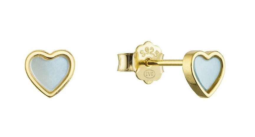 Evolution Group Pozlátené srdiečkové náušnice s modrou perleťou 11710.3