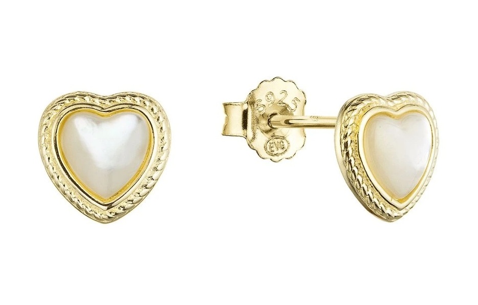 Evolution Group Pozlátené srdiečkové náušnice s perleťou 11433.1